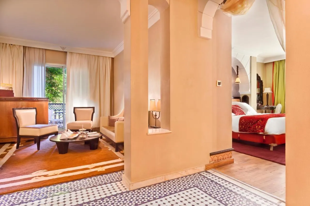 Offering a health club and spa therapy, the 5-star Palmeraie Palace Marrakesh hotel is nestled in the Palmeraie district, 15 minutes' drive Musee Boucharouite Museum. Guests have access to an outdoor swimming pool, a health club and Wi-Fi throughout the property.